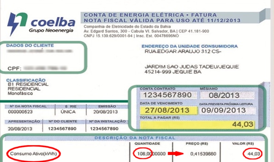 1º Passo – Analise da conta de Luz